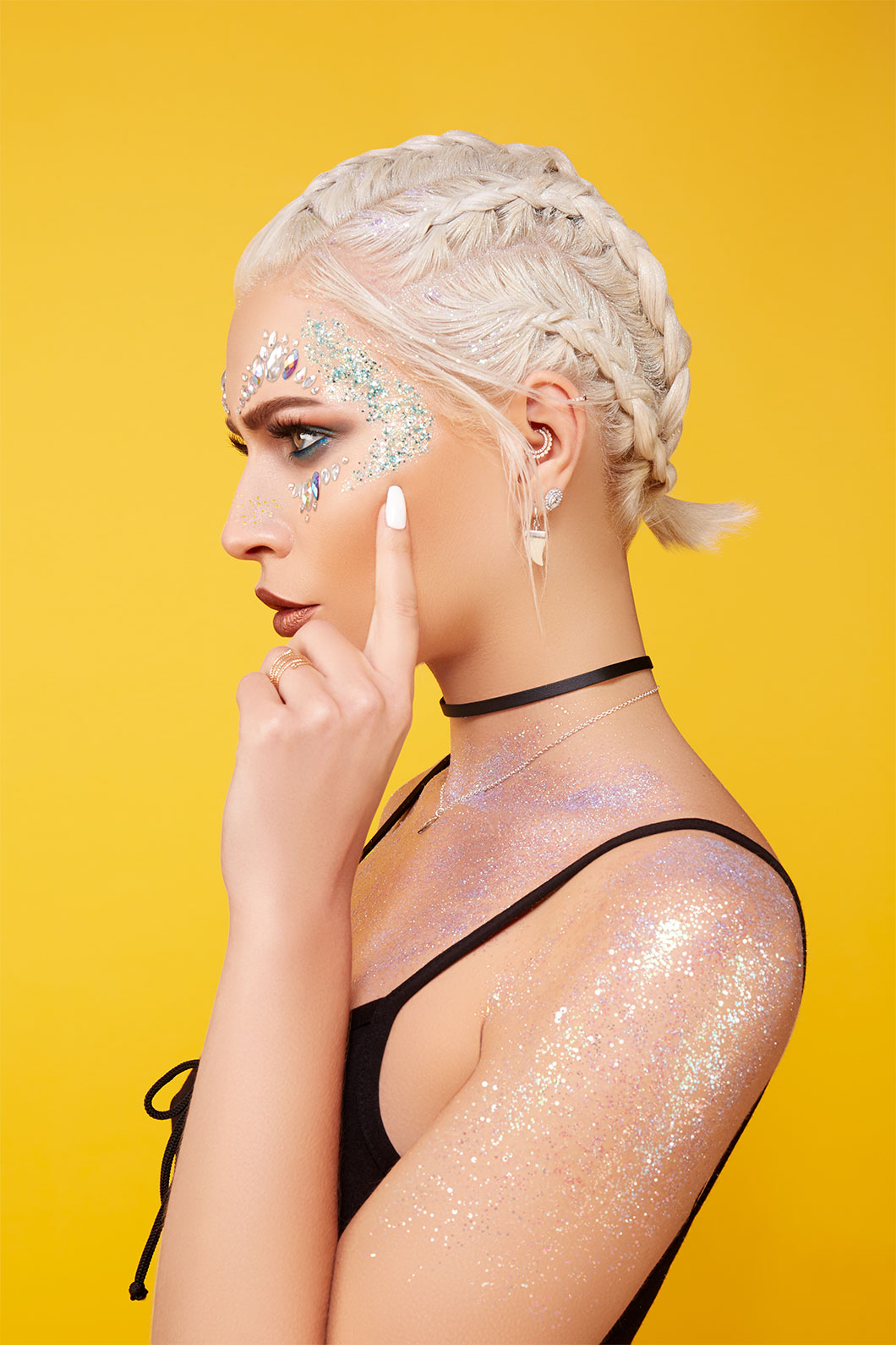 On this image, all the skin tones and textures have been cleaned and perfected. I use a combination of frequency seperation and dodging and burning to do this. In addition I have dodged and burned to accentuate highlights on the skin to make the skin ‘glow’.